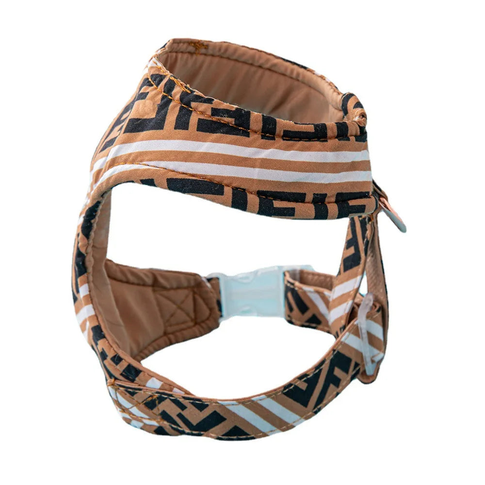 Crafted from soft, breathable fabric, this set ensures a secure yet gentle fit for your pet. Its timeless pattern and rich brown tones make it a must-have accessory for fashionable pups.