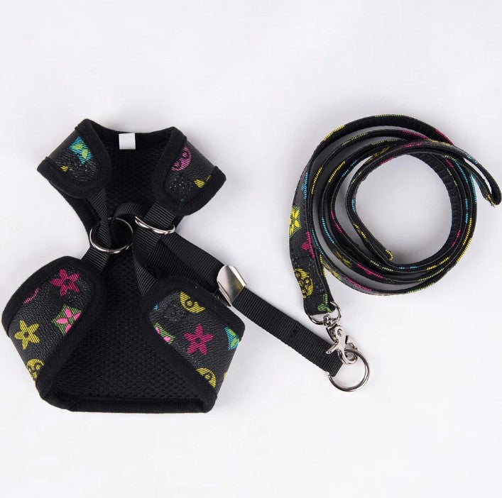 LV Black Harness and Leash Set